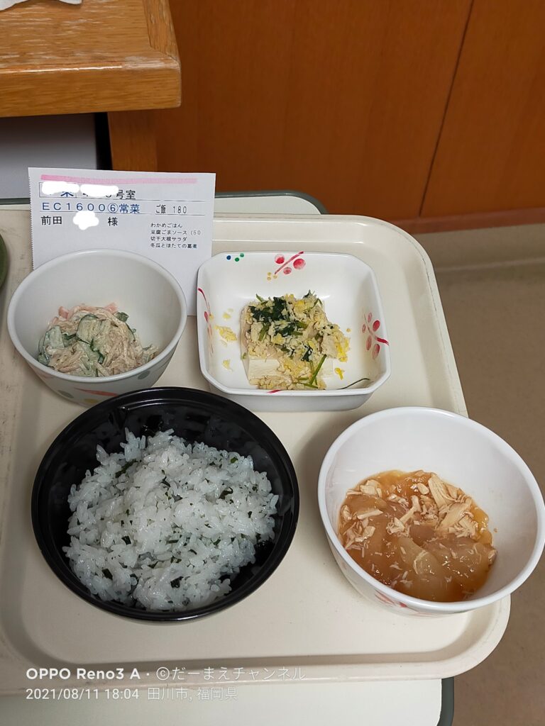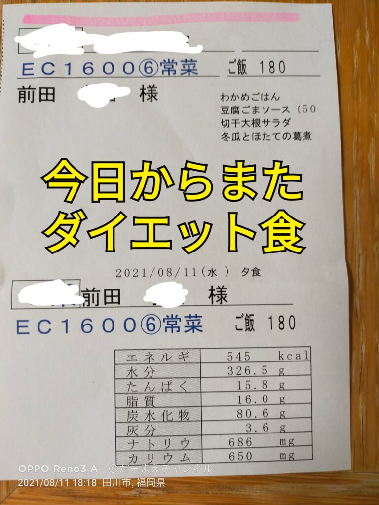 明日の13時頃から手術なので、今日の夕飯までは、普通のメニュー。