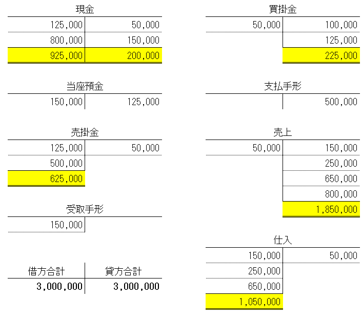 ※正しく転記できている場合は ←借方・貸方→ の各合計は仕訳の合計と一致します。