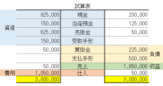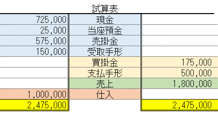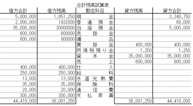 そこでこれらをまとめたものが今回のタイトルである (試算表)となり、以下にその例を示します。