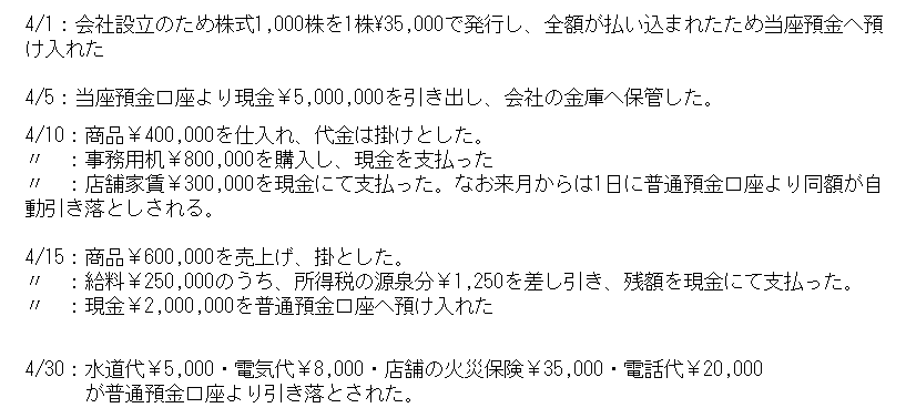 10-①章で使った取引を再度表示します(一部内容変更有)