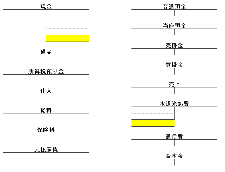 前章の復習を兼ねて、すべての勘定を転記してみましょう。