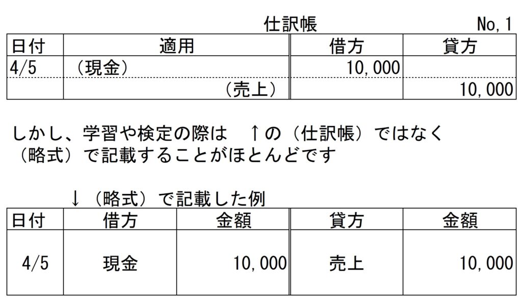 | 1:日付 4/5 の出来事 2:金額 代金¥10,000 の話 3:原因と結果 商品が売れ お金を受け取った。 |