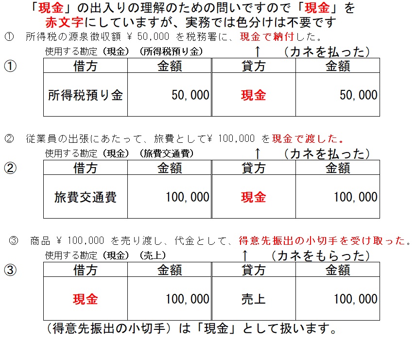 狙いは、現金の仕訳の理解と問題文の言い回しに慣れてもらうことです。