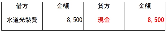 ⑧ 今月の水道料金 ¥8,500を現金で支払った。