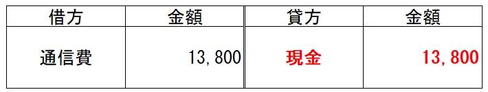 ※ ↑「通信費」とは、電話代・携帯電話代・(機器代金は原則別勘定とする)や切手・はがき・郵送代などを指す。