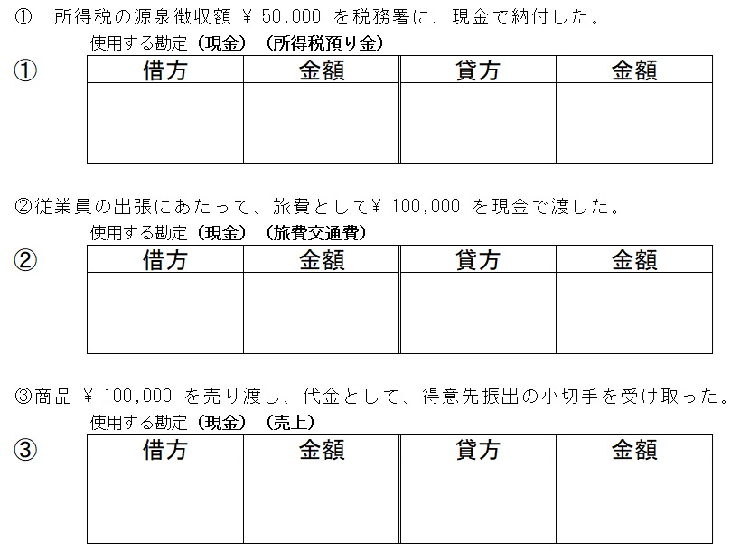 ※問題文の「借方科目」に書かれた勘定科目名とどんな取引の時に使うのかご参考にしてください。