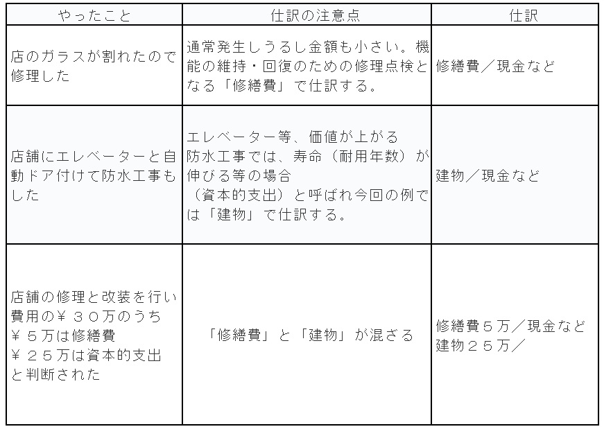 固定資産(店舗など)が壊れたりして修理(修繕)した場合の仕訳