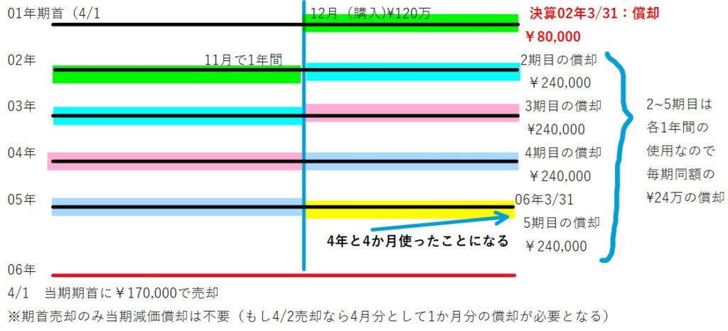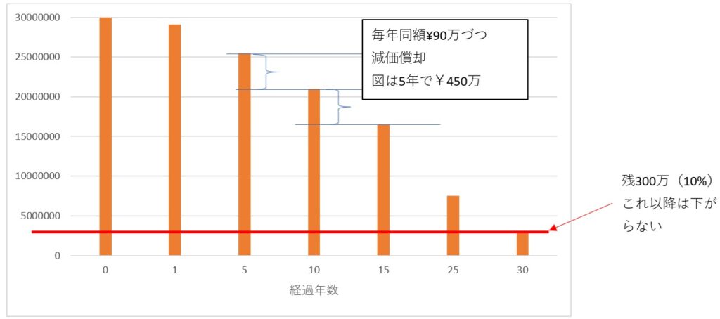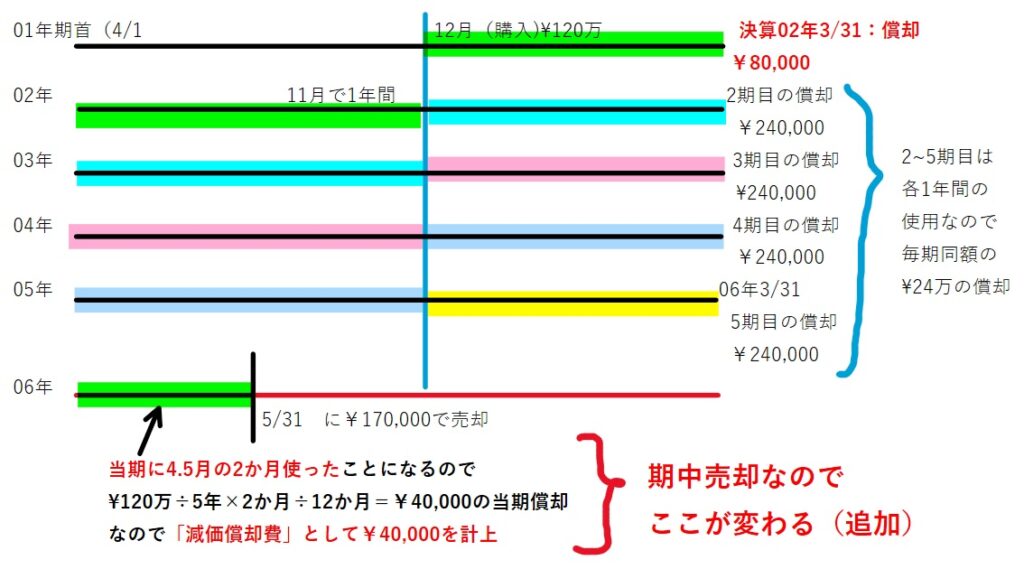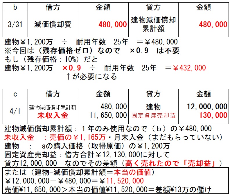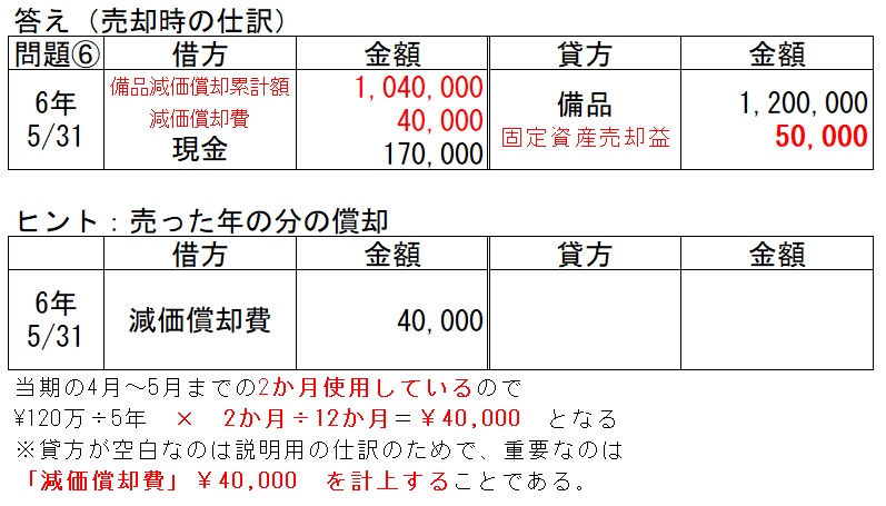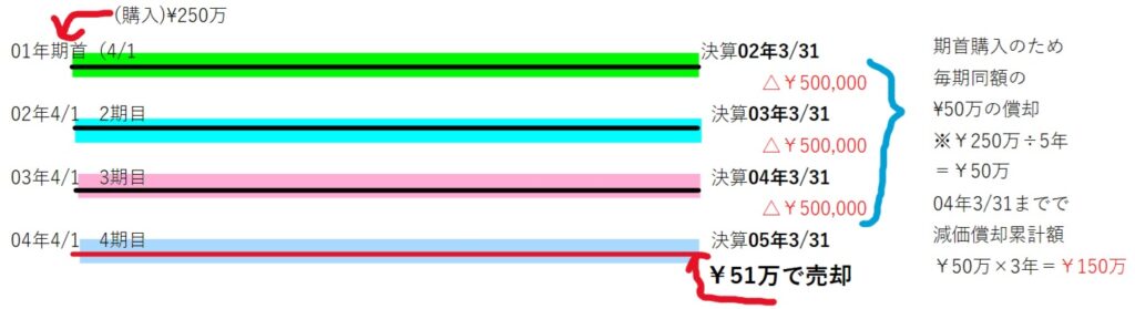 土地以外の固定資産は、売却時に(減価償却)分を考える