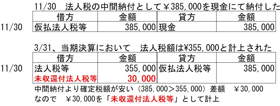 11/末 に 中間申告を行い、それによって求められた法人税を「仮払法人税等」(資産)として納付