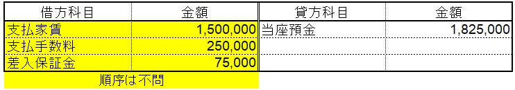 家賃6カ月分(¥250,000/月)・・・・「支払家賃」(¥25万×6ヵ月)¥150万