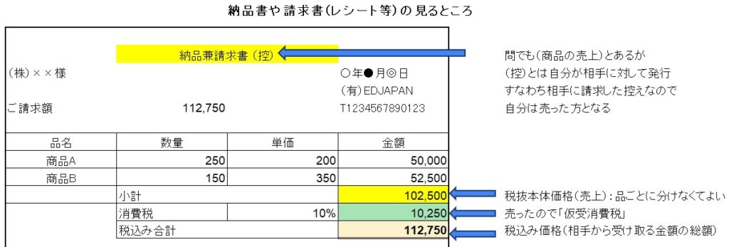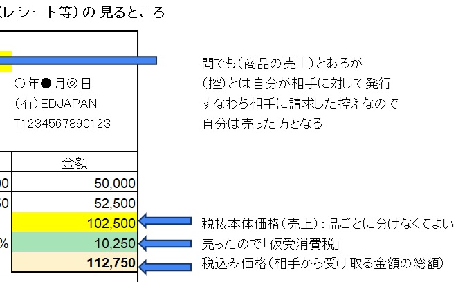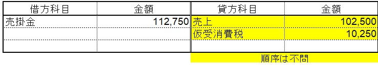 なので(小計)¥102,500:「売上」 ・(消費税)¥10,250:「仮受消費税」を 貸方→へ