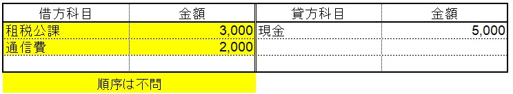 ※本問に限らず (順序は不問)とあるのは 勘定科目と金額の組み合わせが正しければ上下の順は不問という意味です。