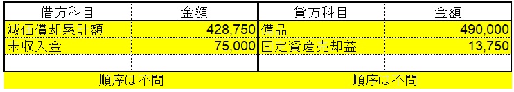 補足・(備品¥490,000-減価償却累計額¥428,750=実施価値¥61,250