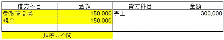 ¥150,000については共通商品券で受け取り:←借方「受取商品券」