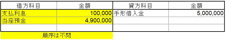 ¥500万 × 2.4% × 10か月 ÷ 12か月 =¥100,000←「支払利息」